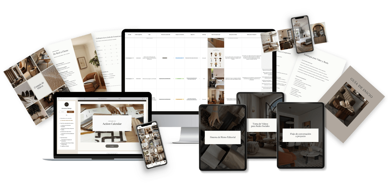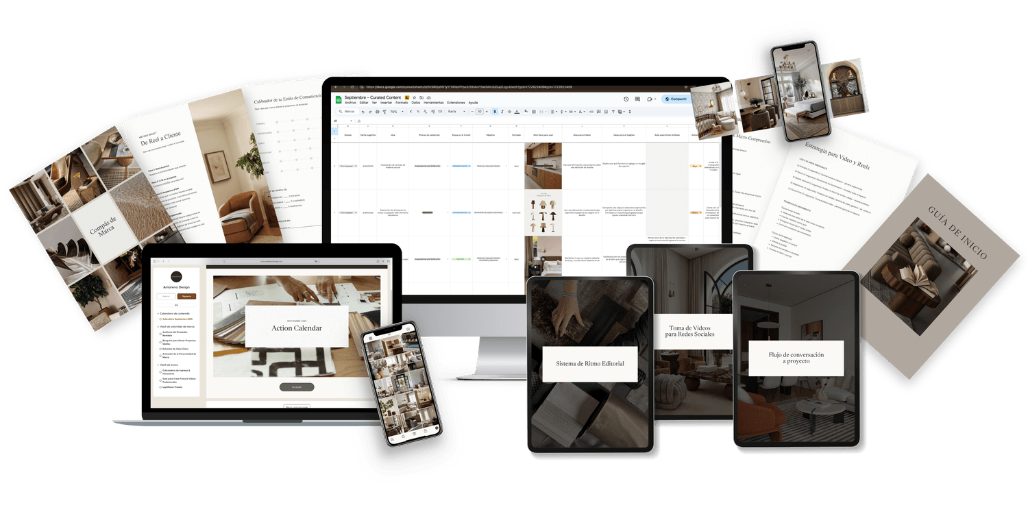 El sistema de contenido mensual para estudios de interiorismo y arquitectura, para que siempre sepas qué publicar, cuándo y por qué sin comprometer tu tiempo.
